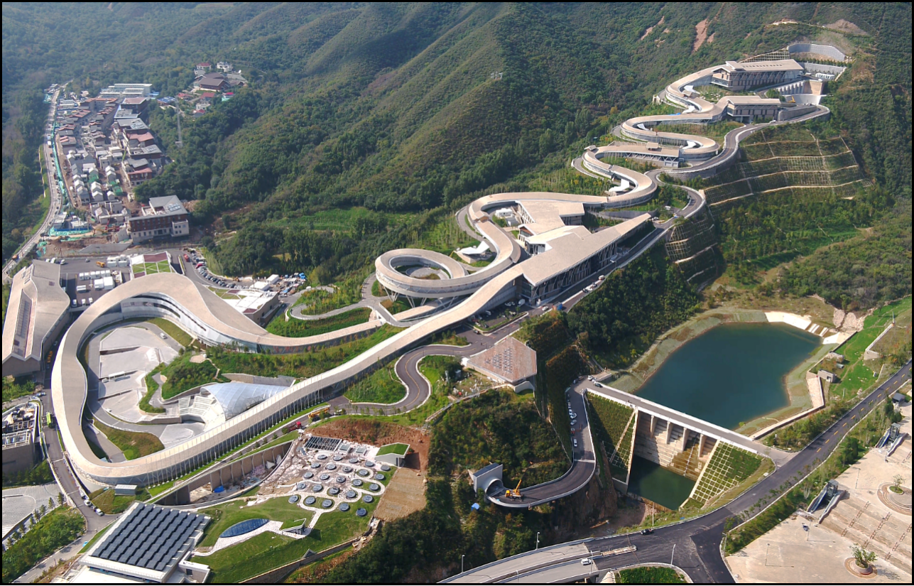 國家雪車雪橇中心賽道為狹長空間扭曲板殼結(jié)構(gòu),全長1975m,落差121m,在彎道數(shù)量、賽道長度和建造難度等方面均超越國外同類賽道,獲中國建設(shè)工程魯班獎、詹天佑獎。該技術(shù)依托國家科技部重點研發(fā)計劃,自主研發(fā)了結(jié)構(gòu)噴射混凝土材料制備及施工技術(shù)、開放式氨制冷系統(tǒng)安裝及運行、競速型賽道制冰修冰、氣候保護遮陽系統(tǒng)建造、基于數(shù)字孿生的智能建造等成果,達到國際領(lǐng)先水平,是我國首條毫米級雪車雪橇賽道,成功打破國外技術(shù)壟斷。
